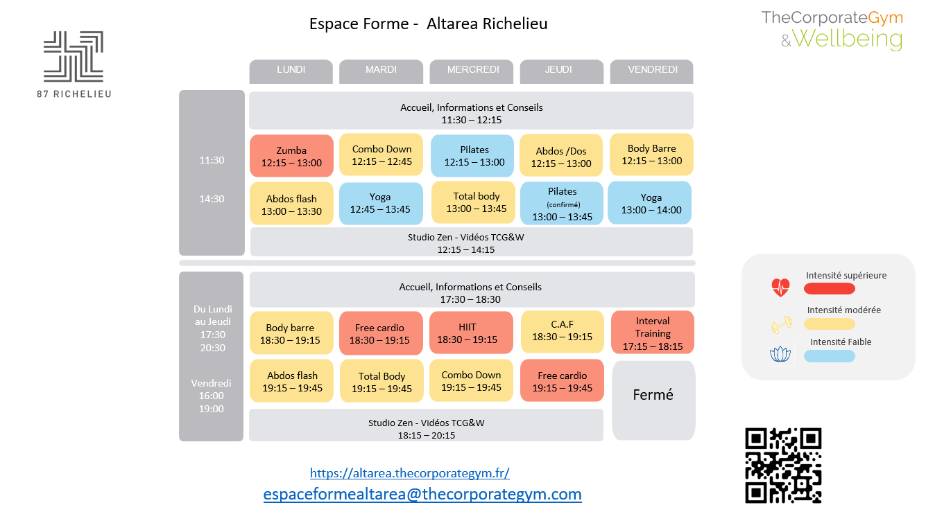 - Une confirmation vous sera adressée par courriel pour toute réservation à un cours.